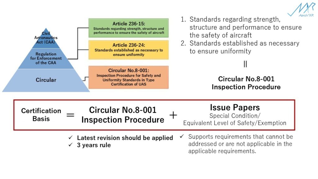 Inspection procedures for these standards are specified in Circular No. 8-001 “Inspection Procedures for Safety and Uniformity Standards for Type Certification, etc. of UAS”, which provides specific standards.